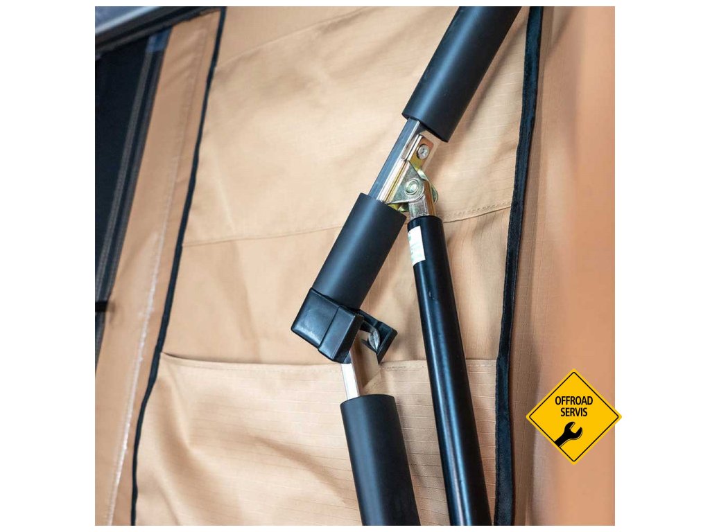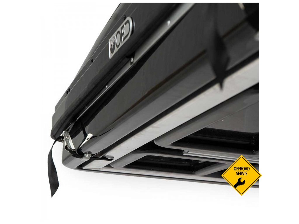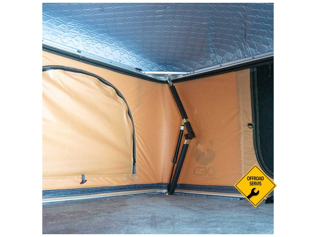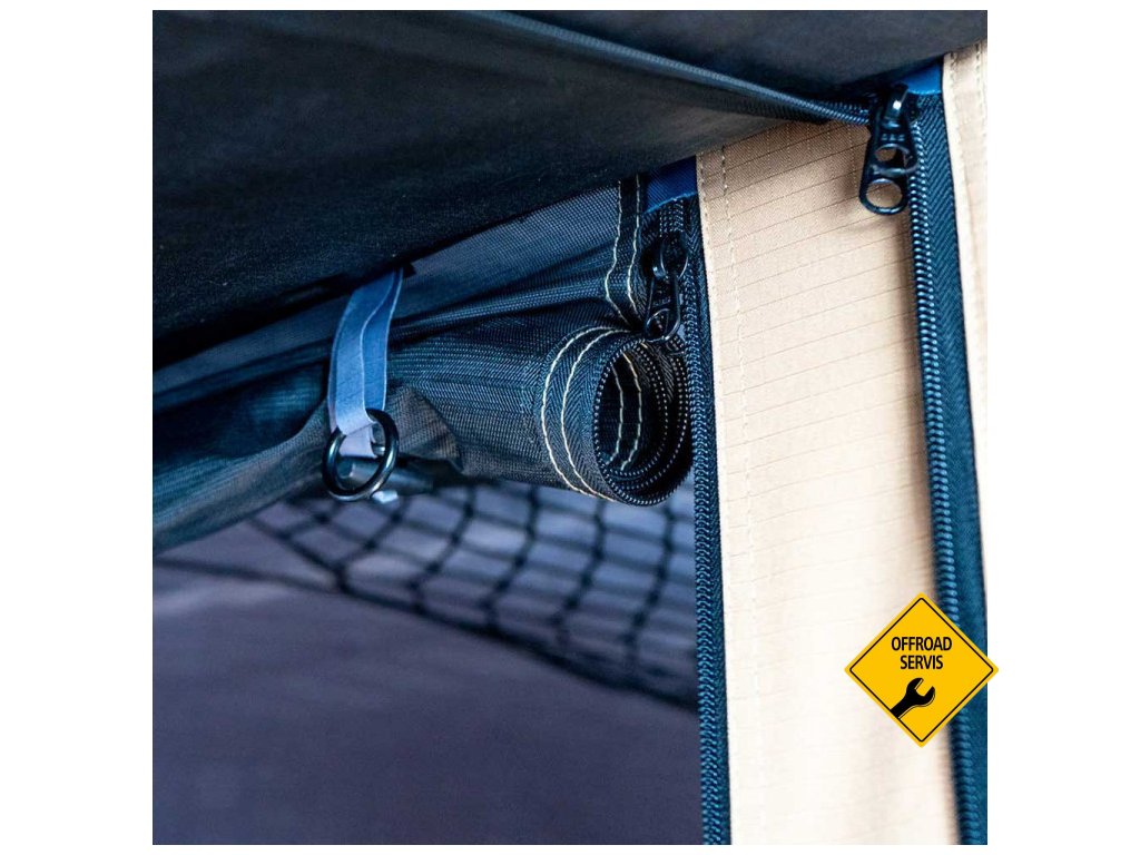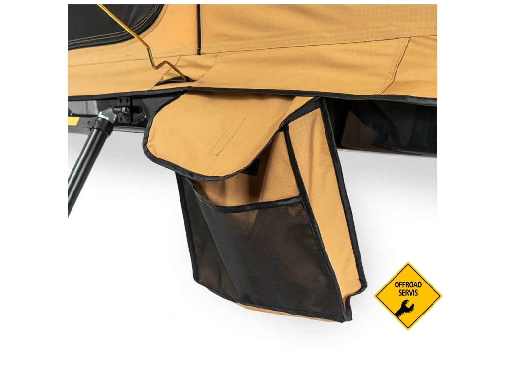 Kromě toho má náš stan dvě tašky na boty visící venku u vchodů, skládací stříšky po stranách a velkou síť na oblečení na střeše pro uložení všech vašich nezbytností . Uvnitř najdete mnohem více dobře navržených kapes pro všechny vaše věci, jako je notebook, baterka a další vybavení 4x4. Střecha a podlaha jsou obloženy antikondenzační rohoží, která udržuje vnitřek suchý a sítě proti komárům v oknech zabraňují pronikání hmyzu. Připravte se na maximální zážitek z kempování se střešním stanem OFD Hard Shell.